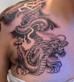 Dragon Popular Tattoo in BreastDragon tattoos can have different meanings to different people. It's all depending on how you see the mythical creature and as to what design you choose.